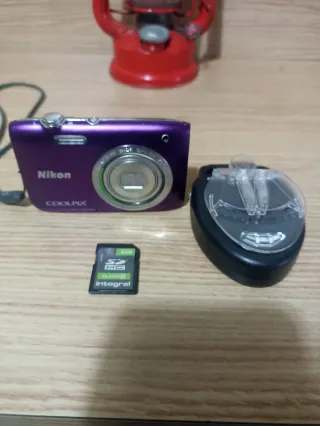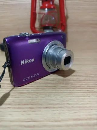 Cámara digital Nikon Coolpix en color morado, ideal para capturar tus momentos. Incluye una tarjeta de memoria SD de 8GB para almacenar tus fotos y vídeos, y su cargador. - Cámara compacta Nikon Coolpix. - Color: Morado. - Tarjeta de memoria SD Integral de 8GB. - Cargador de batería. - Nikon S2800 - mas camaras en mi perfil
