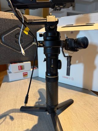 En perfectas condiciones, se vende por actualización de equipo. Se entrega montado para poder probarlo. Estabilizador profesional de 3 ejes para cámaras. Viene con todos los extras que se ven en las fotos. - Modelo Zhiyun Crane 2S Pro. - Diseño robusto y ergonómico. - Compatible con cámaras de cine y DSLR. -Control preciso de enfoque digital y mecánico. -Baterías extraíbles para un tiempo de funcionamiento máximo de 12 horas.