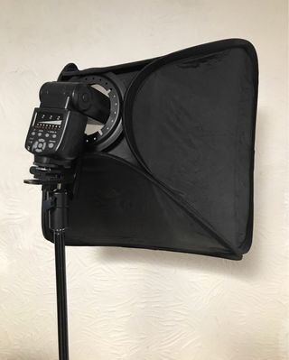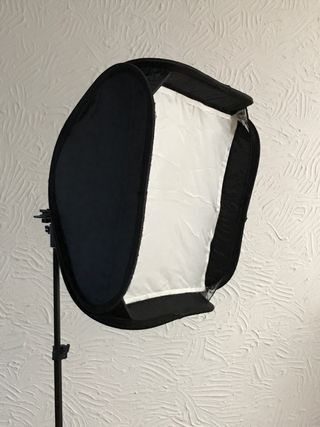 Softbox plegable para flash de mano de 50cm. Con adaptador para encajar el flash y rótula específica. Tela translúcida e interior plateado. Se pliega retorciendo tipo tienda de campaña. Incluye bolsas de transporte.