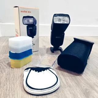 Flash Godox TT600S con accesorios. Completamente nuevo, conserva el plástico protector de la pantalla. Compatibñe con cámaras Sony. - Incluye difusores de colores. - Funda de transporte negra. - Protector de flash blanco. - Caja. - Soporte. Preferiblemente entrega en mano para comprobar el buen estado del producto.