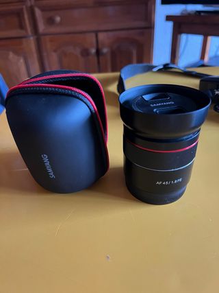 Objetivo Samyang AF 45mm f1.8 en excelente estado, como nuevo. Cadi no lo he usado. Incluye su funda protectora. - Montura sony e - Apertura f1.8.