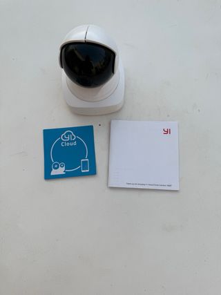 Cámara de vigilancia Yi con diseño moderno y compacto. - Cámara de vigilancia. - Incluye manual de Thank you for choosing Yi-Cloud Camera 1080p. - No funciona