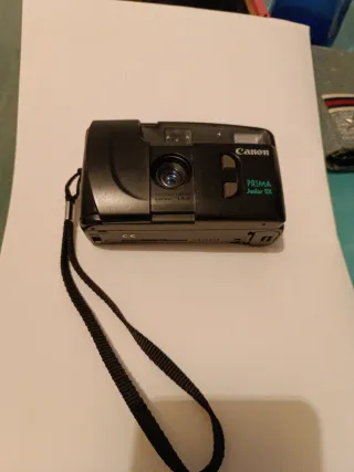 Cámara analógica Canon PRIMA junior DX en color negro. Compacta y fácil de usar. - Correa de mano incluida.