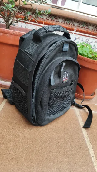 Mochila Tamrac de tamaño pequeño, ideal para transportar tu equipo fotográfico. - Compartimento principal con cremallera. - Bolsillos laterales de malla. - Asa superior acolchada. - Correas de hombro ajustable. - Acolchado interior de gran calidad