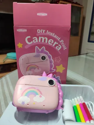Divertida cámara de impresión instantánea con diseño de unicornio. - Incluye pegatinas para decorar. - Viene con rotuladores de colores. - Incluye rollo de papel para imprimir.