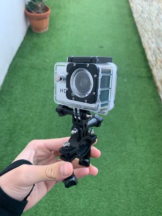 Cámara de acción con resolución HD, ideal para capturar tus aventuras. - Diseño compacto y ligero. - Carcasa protectora incluida. - Es sumergible Pone que es marca Go pro pero no es esa es que no se que marca es.