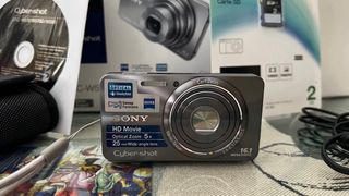 Cámara digital Sony Cyber-shot DSC-W570 en color plata. Incluye accesorios. - Incluye funda. - Tarjeta SD de 2GB. - Cajas originales. - Cables originales.
