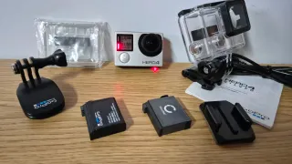 Gopro Hero4 Silver funcionando perfectamente. Pantalla táctil y lente impolutas. Pantalla táctil, grabación 4K, QuikCapture, fotos12 megapixeles, modo Superview, wifi, Bluetooth....etc Se incluye : 1x Bateria original. 1x Batería compatible. Carcasa submarina (hasta 60 metros) más tapa trasera abierta para exteriores. Soporte pinza. Cable USB de carga. Hebilla de anclaje y base adhesiva curva para casco. Gopro 4K, Moto, Submarinismo, buceo, Snorkel, Surf, Bicicleta, Ski, Snowboard, Senderismo, Caza, escalada, pesca, paramotor, trail, Nieve, deportes extremos, Trial, Max360, Trial, Gopro, Gopro Hero, Gopro Hero4, Gopro