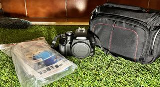 Cámara réflex digital Canon EOS 1000D en color negro. Se encuentra en muy buen estado. - Incluye bolsa de transporte. - Manuales y accesorios. Características principales: Sensor APS-C de 24,1 MP Vídeo Full HD Compatible con objetivos Canon EF / EF-S Fácil de usar y con excelente calidad de imagen Incluye: Cuerpo Canon EOS 2000D Funda de transporte Manual original Cámara cuidada, funcionando correctamente. Ideal para viajes, eventos o aprendizaje fotográfico.