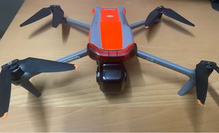 Dron DJI AIR 3 en colores gris y naranja ( pegatinas reflectantes para ser visto ) - Diseño aerodinámico. - Cámara integrada. - Hélices de alta eficiencia. Incluido cargador de baterias y maleta de transporte Sólo ha sido utilizado por un profesional, nunca ha sufrido caídas Demostranle su perfecto funcionamiento