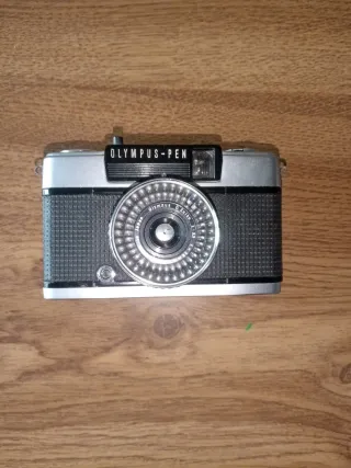 Cámara fotográfica Olympus-Pen con un diseño clásico y elegante. - Cuerpo en color plata y negro. - Lente Olympus D. Zuiko 1:2.8 f=28mm. - Fabricada en Japón. - Tiene todos los componentes bien obturador objetivo, porta carretes disparador carcasa.... - La cámara se ha utilizado en alguna sesión fotográfica no muy habitualmente. No obstante se garantiza su funcionamiento.