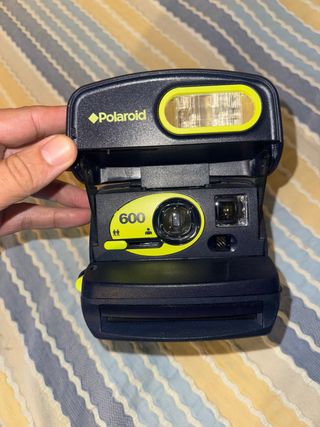 Cámara instantánea Polaroid 600 - Color azul marino con detalles en amarillo. - Flash integrado para tus fotos. - Solo se habrá usado una o dos veces.