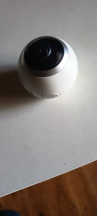 Cámara SJCAM 360 en color blanco y plateado. - Diseño esférico. - Lente frontal. - Botón de encendido/apagado.wifi sin estrenar