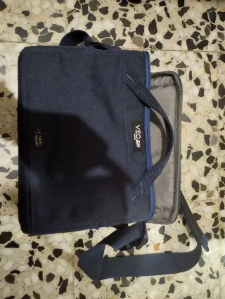 Funda de color negro para cámara. - Material resistente. - Correa ajustable para llevar al hombro.