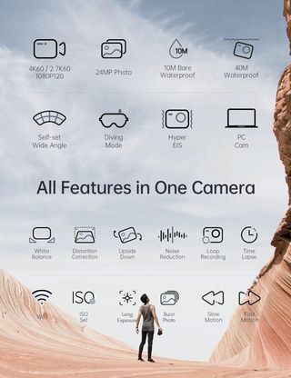 WOLFANG Cámara Deportiva WiFi 4K 60FPS GA300, Vide