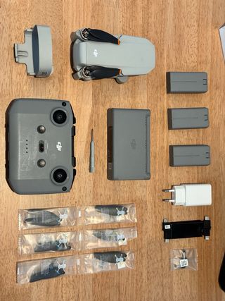 Pack dron DJI MINI 2 incluye: -Dron DJI MINI 2 -Control remoto -Bolsa oficial de transporte DJI -Cargador completo de 3 baterias original -3 Baterías -Cables para poder conectar cualquier tipo de móvil -Hélices de repuesto -Destornillador pequeño -Helipuerto desplegable con su bolsa de transporte y 3 estacas de plástico -Protectores de hélices para volar en interiores -Protector solar acoplable al control remoto con espacio para el móvil, a fin de mejorar la visibilidad en los días más soleados -SanDisk Extreme 128 GB microSDXC. El dron está en perfectas condiciones. Se ha usado 2,30 h demostrables