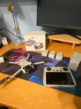 Se vende dron DJI Mini 3 con el pack vuela más. - 3 baterías - Mando de control con pantalla - comprado en abril de 2025, garantía de fábrica hasta 2028. - factura, caja original. - sin Roces, muy poco uso.
