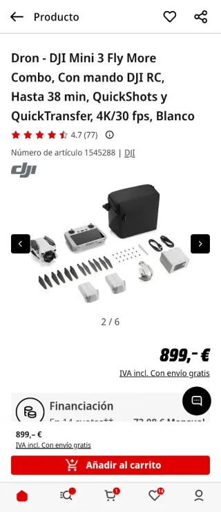 • De media, comprar Drone Dji mini 3 en Wallapop es un 44% más barato que comprar este tipo de producto nuevo