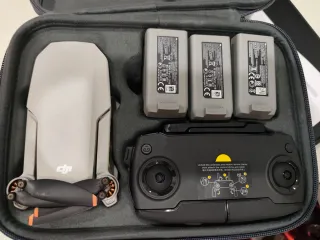 Drone DJI Mini 2 en su versión combo, listo para volar. - Incluye mando a distancia. - Varias baterías para mayor autonomía. - Bolsa de transporte. - Cargador y cableado.