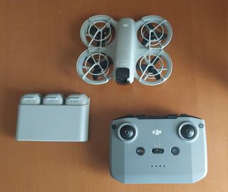 Se vende dron DJI Neo, ideal para capturar imágenes aéreas. - Incluye 3 baterías para mayor tiempo de vuelo. - Mando de control remoto para una operación sencilla. - Diseño compacto y ligero. - Maletin duro para transportarlo.