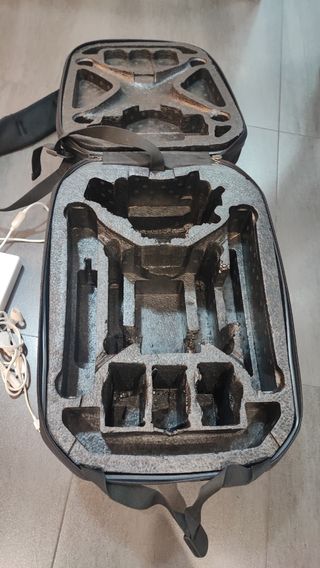 Vendo maleta de transporte para DJI Mini. Es perfecta para guardar y transportar tu dron de forma segura. - Incluye compartimentos para el dron y accesorios. - Asa de transporte cómoda y resistente. - Material exterior de tela gris.