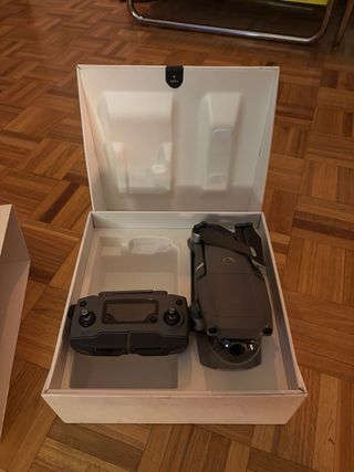Dron DJI Mavic Air 2 Fly More Combo. Incluye los siguientes accesorios: - RC con recambios de joysticks - Bolsa de transporte original DJI - 4 Baterías con 5, 11, 13 y 16 ciclos - Hélices de repuesto - Cargador de baterías - Cables - Pista de despegue/aterrizare - Fundas inífugas para baterías - Pack de filtros ND polarizados - Protectores del dron - Caja original IMPORTANTE LEER: El dron se ha usado muy poco y está en perfecto estado salvo un pequeño roce en el RC (ver foto). Por lo demás está perfecto y funciona correctamente.