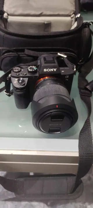 Cámara Sony Alpha 7ii con gimbal DJI Ronin SC. - Cuerpo de cámara Sony Alpha 7ii.(Menos de 10.000 disparos) - Estabilizador de imagen DJI Ronin SC. - objetivo telcom 27-70 - viene con baterías y sd viene con las tapas . Falta el cargador . - mochila de transporte
