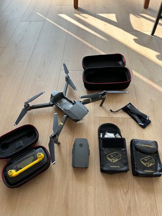 Dron en buen estado sencillo de volar. El pack incluye: - Dron mavic air 2 - Tres baterias - Cargador múltiple - Mando - Bolsa de transporte acolchada