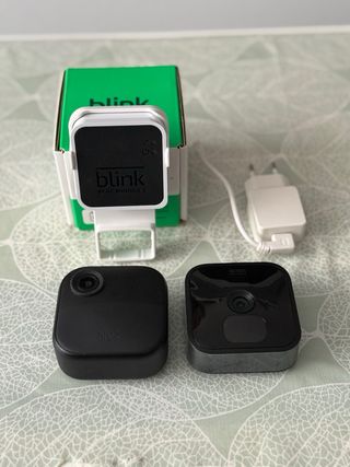 Sistema de videovigilancia Blink Outdoor o Indoor. - 2 Cámaras de seguridad para exteriores o interiores - Incluye módulo de sincronización para guardar grabaciónes en un usb sin pagar suscripción. -Alertas por movimiento en tiempo real Funciona perfectamente. se vende por cambio de sistema de vigilancia.