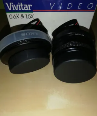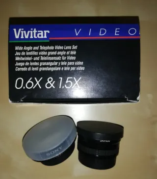 Set de lentes granangular y teleobjetivo para video. - Lente granangular 0.6X. - Lente teleobjetivo 1.5X. - Incluye tapas protectoras. - Marca: Vivitar.