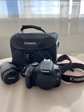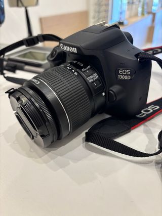 Cámara réflex digital Canon EOS 1300D con objetivo. - Modelo: EOS 1300D - Marca: Canon - Objetivo: EF-S 18-55mm - Incluye correa. la tapa la perdimos y compramos una que es la que sale en la foto, por lo demás lleva todo lo que traía incluida la gamuza original un cable extra y la funda trae también riñonera está perfecta la compramos para un viaje y nunca más la usamos