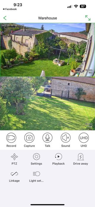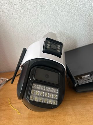 Cámara de vigilancia con doble pantalla y doble canal para monitorización síncrona. - Vista previa de pantalla dual. - Almacenamiento en la nube. - Detección de humanos. - Operación remota. - Intercomunicador de voz. - Soporte para Micro SD. - Alarma acústico-óptica. - Dos sensores.