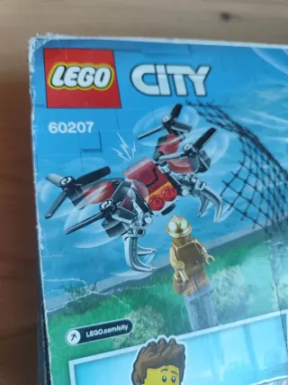 Set de construcción Lego City 60207 Caza de Drones. - Incluye un helicóptero de policía y un dron. - Contiene figuras de minifiguras. - Diseñado para niños a partir de 6 años.