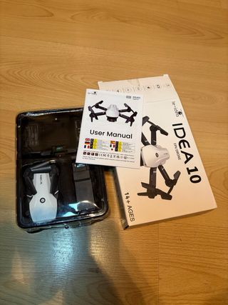 Vendo drone plegable 4DRC V9 compacto y muy fácil de manejar. Cámara integrada para fotos/vídeos vía App. Incluye mando, protectores, hélices de repuesto y cable USB. Especificaciones: • Medidas: 12,5 x 13 cm (abierto) | 5 x 9 cm (plegado). • Peso total kit: aprox. 450g. • Funciones: Despegue automático, giros 360° y control por gestos. • Estado: Excelente, incluye maletín de transporte rígido.