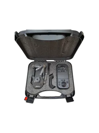 Dron plegable en color negro, ideal para iniciarse en el mundo de los drones. Viene con su estuche para guardarlo y transportarlo fácilmente. - Dron plegable. - Mando a distancia. - Estuche de transporte.