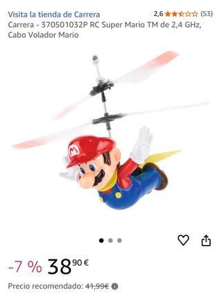 Helicóptero de radiocontrol con licencia oficial de Mario Bros. - Diseño inspirado en Mario. - Control remoto Carrera RC de 2.4 GHz. - Rotor de 18.5 cm (7.68 pulgadas). - Incluye hélices de repuesto. Se ha usado 1 vez