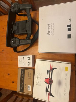 Se vende dron Parrot Bebop 2 junto con su Skycontroller y accesorios. - Dron Parrot Bebop 2. - Parrot Skycontroller. - Pantalla LCD de 7 pulgadas. - Hélices de repuesto. - Adaptador de corriente. Precio negociable o cambios Tiene un pequeño fallo en un motor pero tiene facil solucion solo se tiene que calibrar el motor
