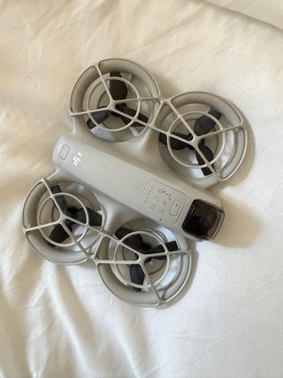 Mini dron DJI en color gris y blanco. Compacto y fácil de transportar. - Diseño ligero. - Hélices protegidas.