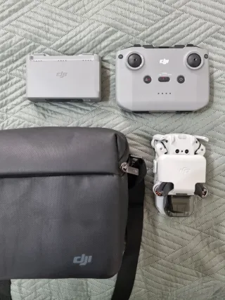 Dron DJI Mini 3 comprado en 2023, con muy poco uso. - Incluye bolsa de transporte. - Batería adicional. - Hélices de repuesto. - DJI RC (control remoto)