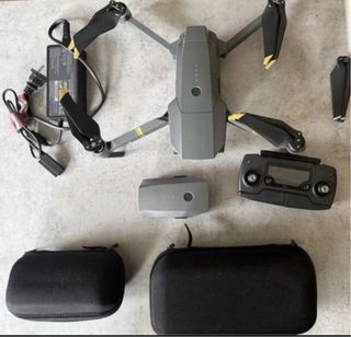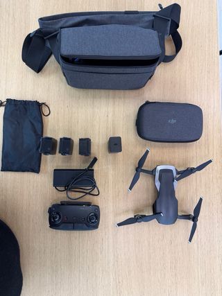 Se vende dron DJI en color gris, junto con sus accesorios para su transporte y carga. - Dron plegable. - Mando a distancia. - Estación de carga para baterías.