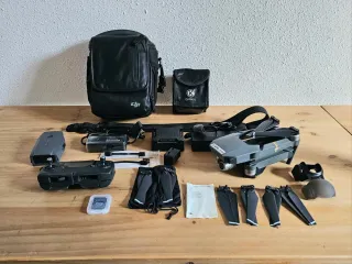 Vendo mi drone DJI Mavic Pro, modelo M1P con los siguientes accesorios: 1 batería Base para cargar 3 baterías a la vez Adaptador batería-USB 1 mando con adaptadores para diferentes USB 1 funda de viaje 1 funda para batería Cargador de coche Cargador de pared Hélices extra Protector lente Tarjeta microSD 16Gb clase 10 + adaptador Está tan cuidado que algunos plásticos están sin quitar. Lo he volado por cientos de lugares, nunca lo choqué. Perfecto estado para el tiempo que tiene. Todo original menos la bolsa de la batería. La funda sí tiene el asa medio fea por ser de cuerina, con el tiempo se peló.