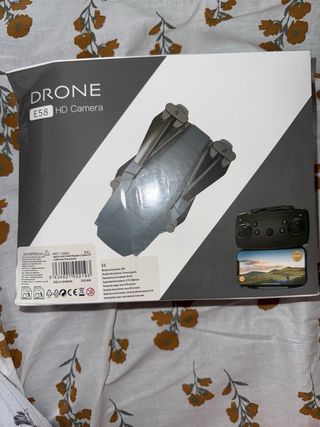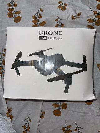 Drone E58 con cámara HD. - Color gris y detalles dorados. - Diseño plegable para fácil transporte.