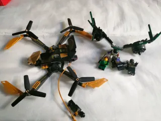 Lote de construcción LEGO Marvel Spider-Man: Duelo del Dron 76195 - Dron principal negro y dorado con hélices. - Dron secundario verde con alas. - se incluyen más figuras que las del set. Sin caja