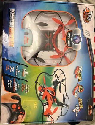 Dron Xtrem Raiders en color rojo y negro. Está nuevo con su caja original. Este modelo cuenta con cámara para fotos y video. - Cámara para foto y video. - Control remoto de 2.4 GHz. - Función de retorno automático. - Auto looping. - Modo sin orientación. - Tarjeta Micro SD de 2GB incluida. - Batería de litio. - Cargador USB.
