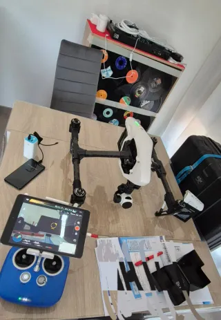 NO ES UN JUGUETE. SOLO PARA USO PROFESIONAL. Drone DJI Inspire foto y video aéreo(hasta 4K). Está como nuevo con muy poco uso y muchos extras. Arnés, helices, brushless, lentes UV, parasol, mandos con fundas de silicona, etc.3 Baterias inteligentes en perfecto estado 2 TB47 y 1 TB48, equipo con menos de 10 horas de vuelo. Posibilidad de incluir un pack sistema de cámara Osmo que incluye como extra un pack SPORT como nuevo también con todos los complementos y soportes valorado en 800€. -Maleta DJI para transporte. Abstenerse ofertas absurdas ni curiosos. Solo para entendidos y profesionales. Equipo completo valorado en más de 3500€.