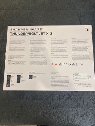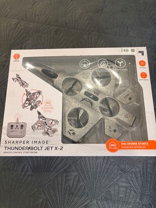 Dron teledirigido Sharper Image Thunderbolt Jet X-2. - Diseño tipo jet. - Realiza acrobacias de 360 grados. - Incluye control remoto. - Luces LED. - Carga vía USB -usado solo para probar en casa, esta nuevo
