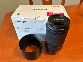 Objetivo Tamron 70-300mm F4.5-6.3 Di III RXD para cámaras Sony E. En perfecto estado, muy cuidado. Incluye su parasol y tapas originales. - Zoom teleobjetivo versátil. - Diseño compacto y ligero. - Ideal para fotografía de naturaleza y retratos. Nota: solo se envía a cuentas con valoraciones.