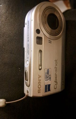 Cámara digital Sony Cyber-shot DSC-P150 plateada. Batería 🔋0% Es posible que sea necesario cambiarlo. - Zoom óptico. - Grabación de vídeo MPEG Movie VX. - Lente Carl Zeiss.