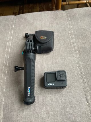 Cámara de acción GoPro Hero 9 en color negro, con accesorios. -Tripode/palo selfie + camara=200 -2 baterias extra + cargador de baterias+camara=230€ -Camara+baterias+tripode y otros accesorios=250€ ⚠️Los accesorios son de la marca oficial de go pro