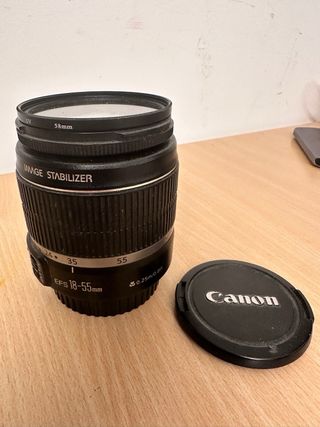 Objetivo Canon EF-S 18-55mm con estabilizador de imagen. - Diámetro de filtro: 58mm. - Zoom óptico. -Estabilizado. -Filtro UV protector.